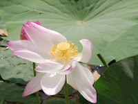 On Sunday, I dragged myself out of bed at an ungodly hour (okay, 8 a.m.) and joined the family for a trip to a holy lake, Lake Kolayat (my photos). This is a pretty important pilgrimage lake, on par with Pushkar, only not so horrible to visit. It was hot, but really pretty. And all that water! I guess I have never seen lotus before, or I would have known before now how big they grow, right?